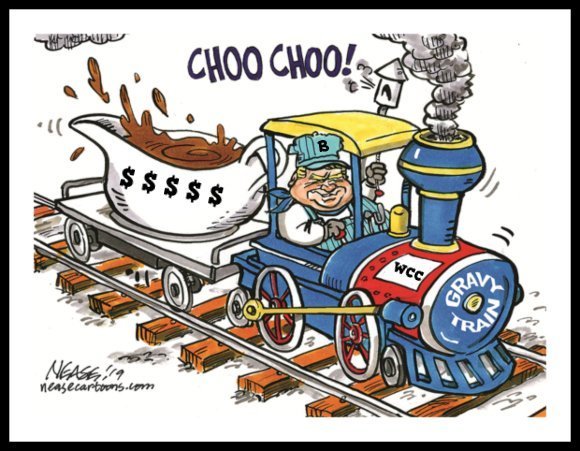 Image above: “Riding on the gravy train” means securing a job, project, or situation that provides substantial financial reward for very little effort or work. It refers to an easy, often long-term, way to make money or earn excessive, sometimes undeserved, profits. [Source: the-terrier.com.au]